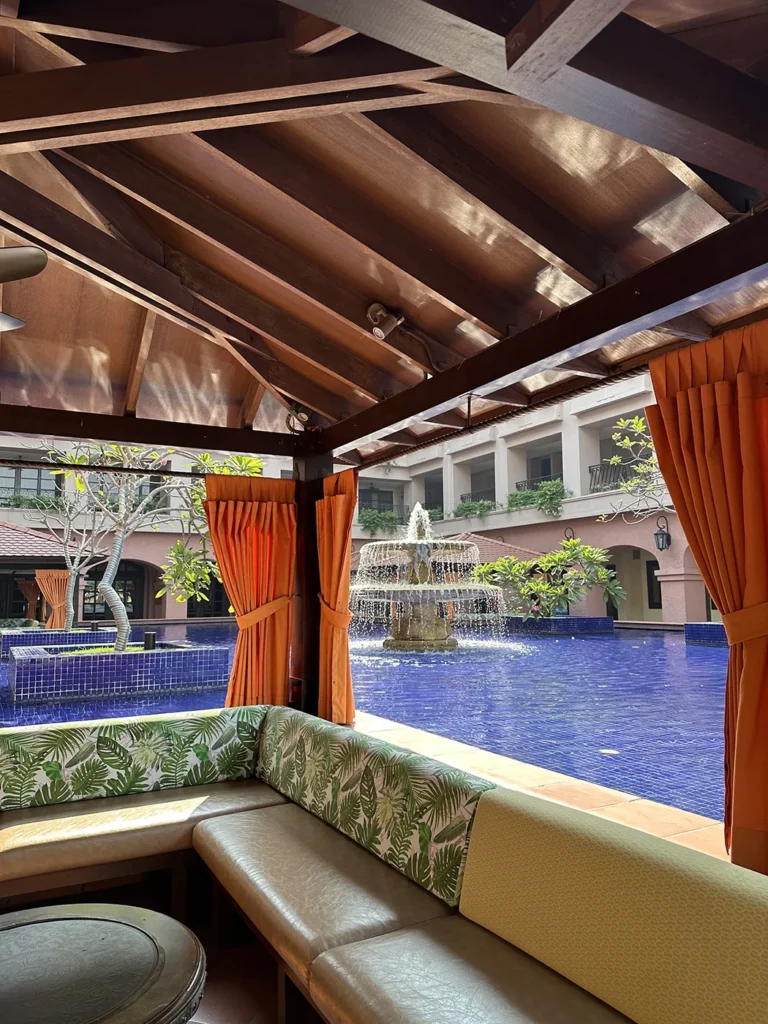 このホテルは、2010年ごろの開業で、マラッカの多様な文化遺産(ヨーロッパ、中華、マレーなど)をデザインに取り入れた地中海スタイルの建築が特徴。